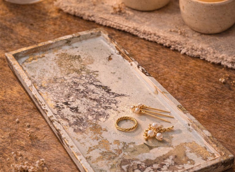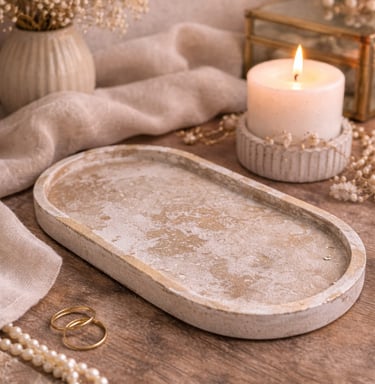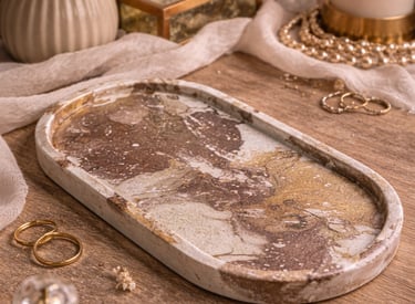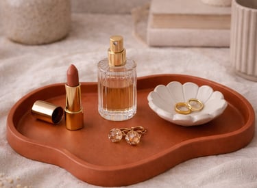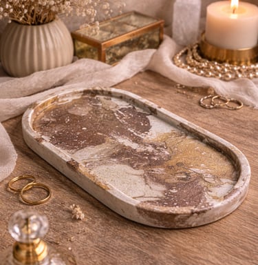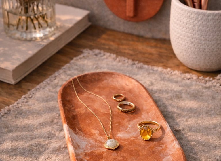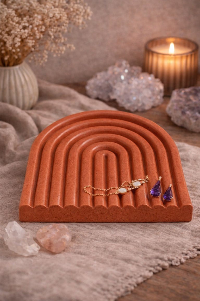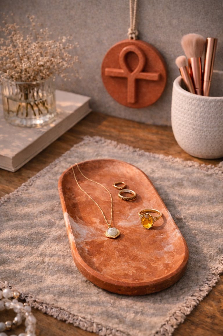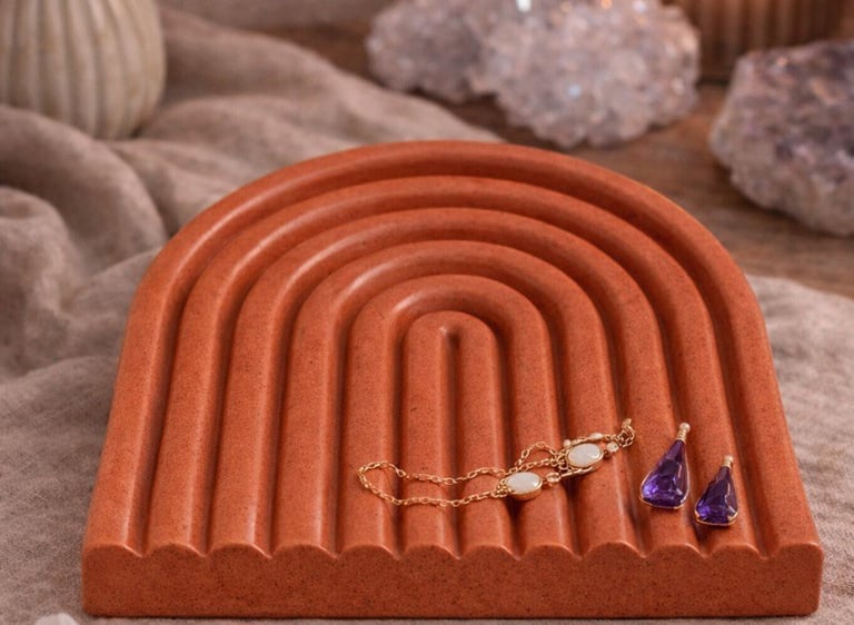 Aqui você encontra: bases, bandejas, porta-objetos, porta-joias em tons terrosos.