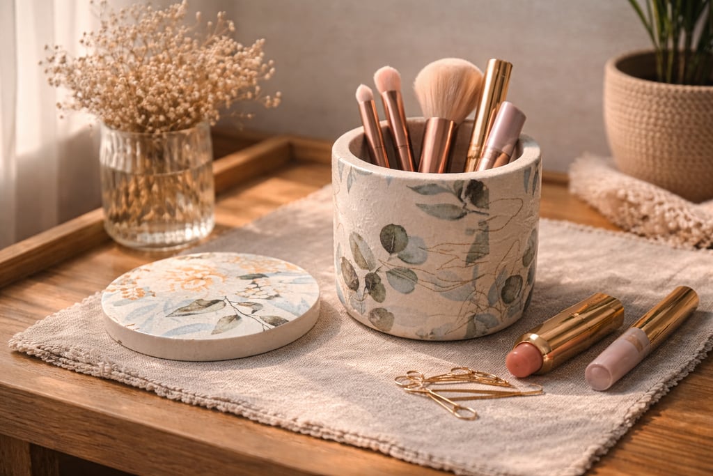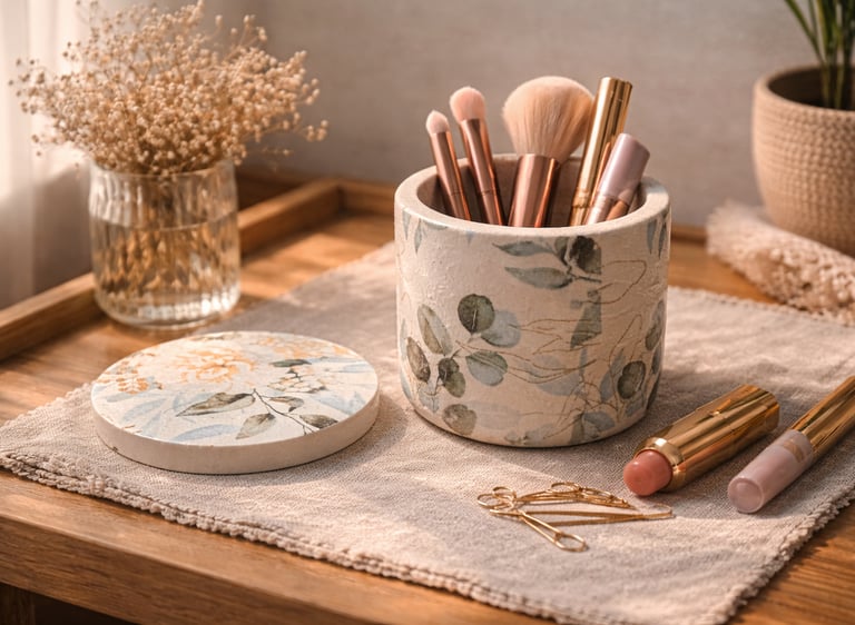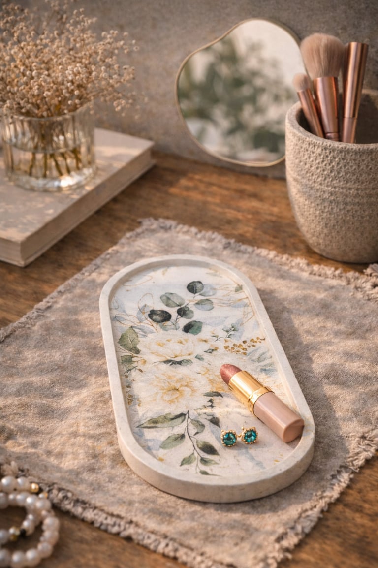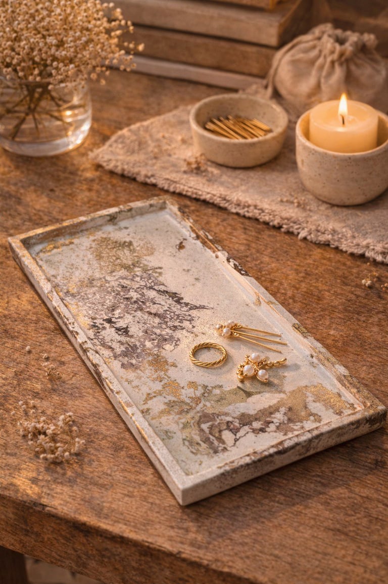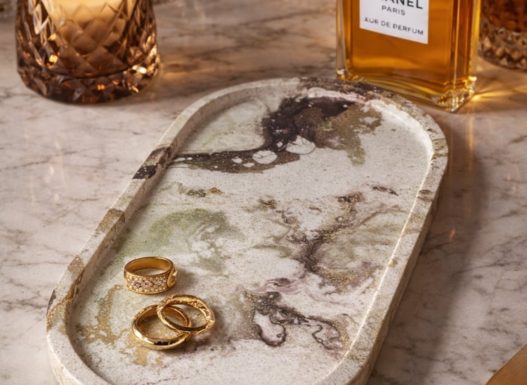 Aqui você encontra: bases, bandejas, porta-objetos, porta-joias em tons terrosos.