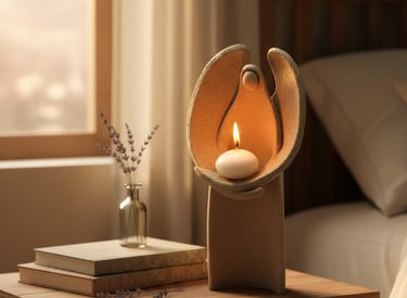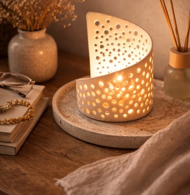 Aqui você encontra: luminárias, incensários, suportes para velas e peças rituais.