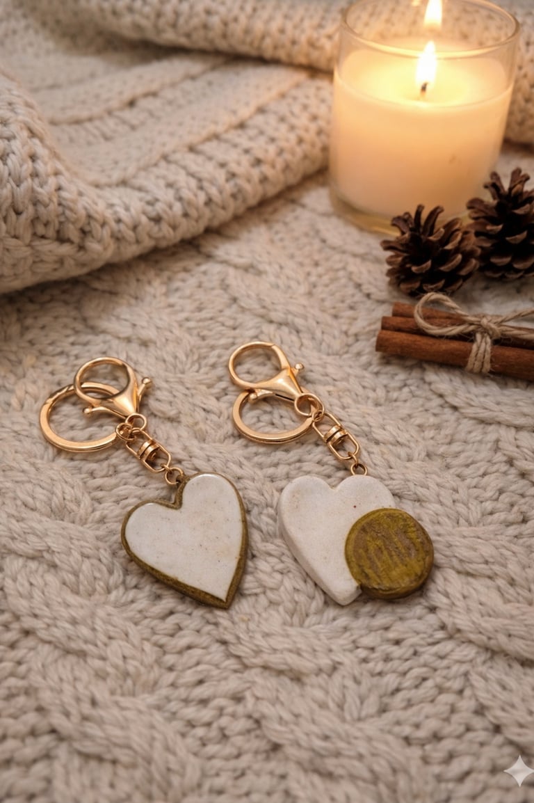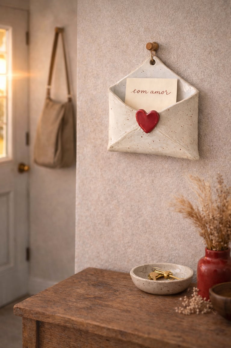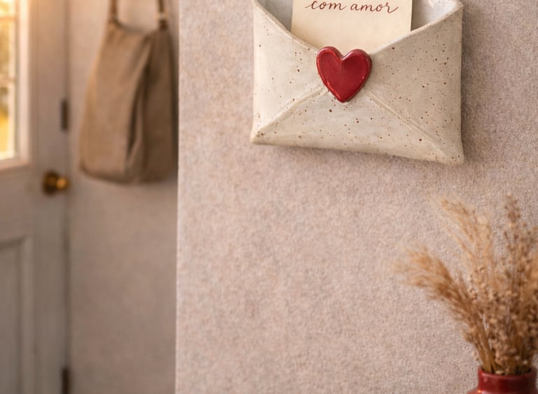 Cada peça - um coração, uma flor, uma palavra - é feita para guardar presença, afeto e intenção. Feitas em cerâmica fria e moldadas à mão, carregam memória, gesto e beleza sutil.
